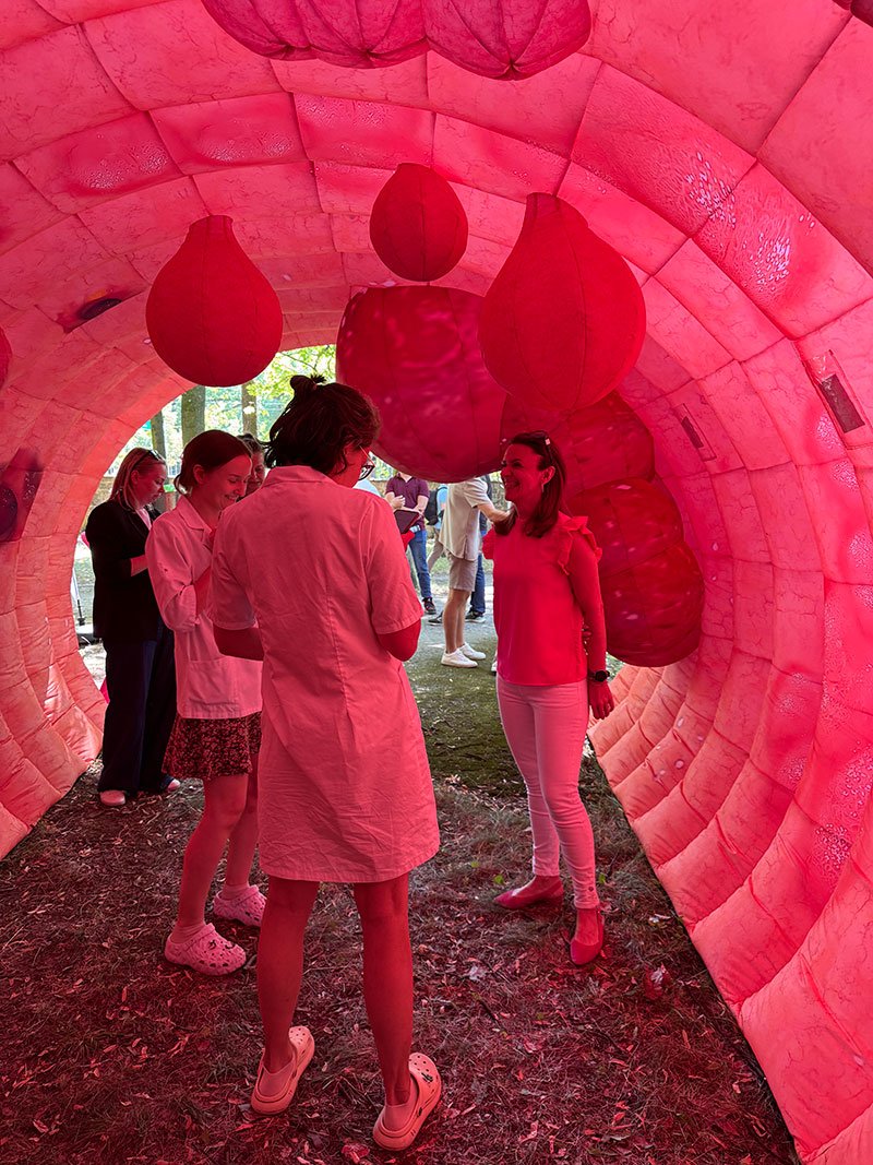 Każdy, kto w tym dniu zajrzał do parku, mógł dosłownie wejść do środka ludzkiego jelita i zobaczyć, jak wygląda ono od środka – tak, jak widzi je lekarz podczas kolonoskopii. Wnętrze modelu pokazywało polipy, uchyłki, stany zapalne i zmiany nowotworowe. Wrażenie? Poruszające. Reakcje? Zaskoczenie, zainteresowanie, a czasem… zamyślenie.